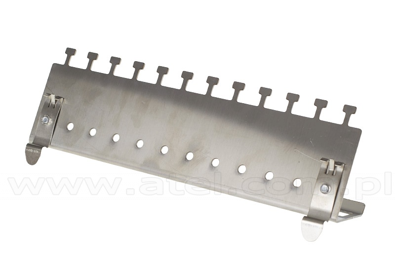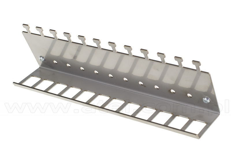 Solid metal handle enabling mounting of twelve keystone ports on a DIN 35mm rail.