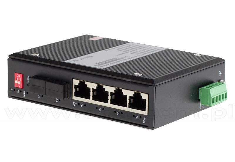 Unmanaged industrial switch, 4x 100/1000 RJ-45 PoE, 1x 100/1000 RJ-45, 1x 1000 SFP (Wave Industrial WO-IS-M2GF4GT-4POE-M)